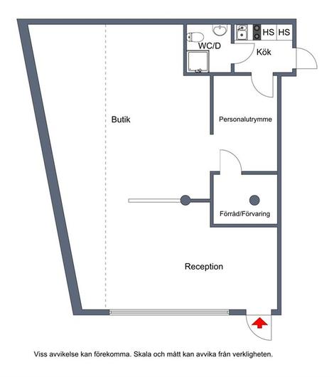 Ljus och flexibel butiks- eller kontorslokal med stora skyltfönster och entré mot Bäverns Gränd. Öppen planlösning som enkelt kan anpassas efter behov. Lokalen erbjuder yta för reception, butik eller kontor, förråd, personalutrymme, trinettkök samt wc med dusch.