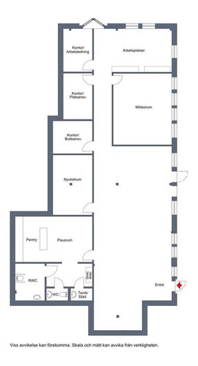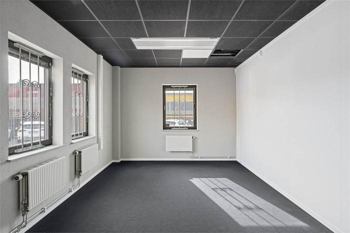 Kontorslokal i markplan om ca 213 kvm med 4 st kontorsrum, ett större mötesrum samt ett utrymme passande för arbetsplatser i öppet landskap. Denna lokal kommer med två st toaletter en RWC/dusch och en standard WC. Lokalen har ett härligt ljusinsläpp och parkeringsplatser i direkt anslutning. Lokalen kommer i en modern grundanpassning som framgår av bilderna. Mörk heltäckningsmatta och undertak samt glaspartier bidrar till en härlig premiumkänsla. Lokalerna är flexibla och kan anpassas efter hyresgästens behov om så önskas.