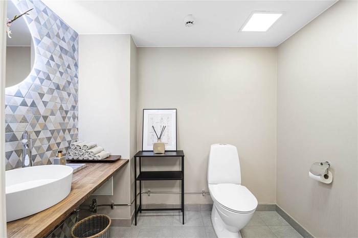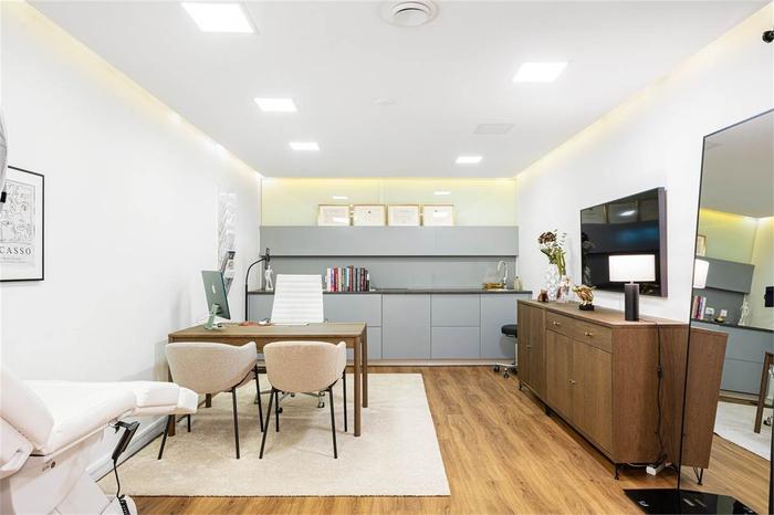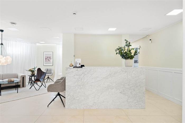 Källarlokal om totalt 345 kvm inredd för kirurgi och vård. När du kliver in i lokalen möts man av en modern kundtoalett samt öppen och modern kundmottagning. I direkt anslutning till kundmottagningen finns ett rymligt kontorsrum. Vidare är lokalen inredd med flertalet patientrum i varierande storlekar, samtliga patientrum är modernt inredda. Det finns även ett rymligt kök med plats för 6-8 personer. Vidare finns operationssal med tillhörande vårdrum och i anslutning finns det ett vilorum med tillhörande. Slutligen finns ett rymligt omklädningsrum som är inrett med tvättmaskin och torktumlare.