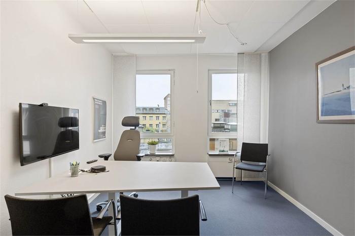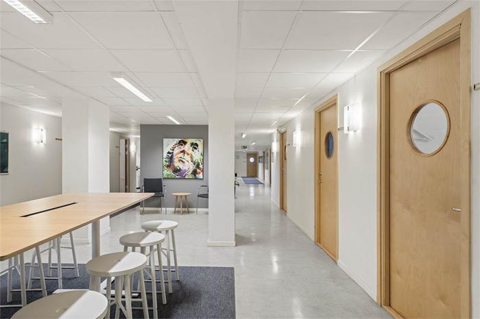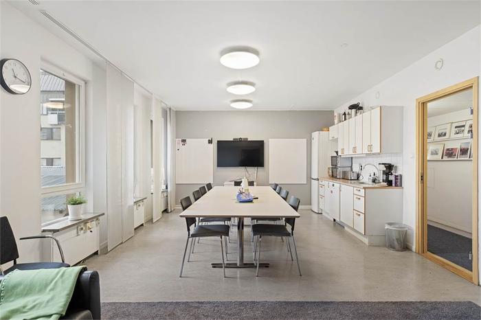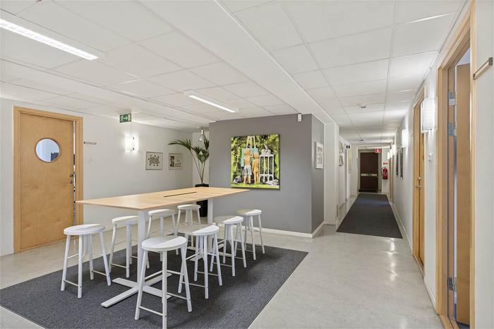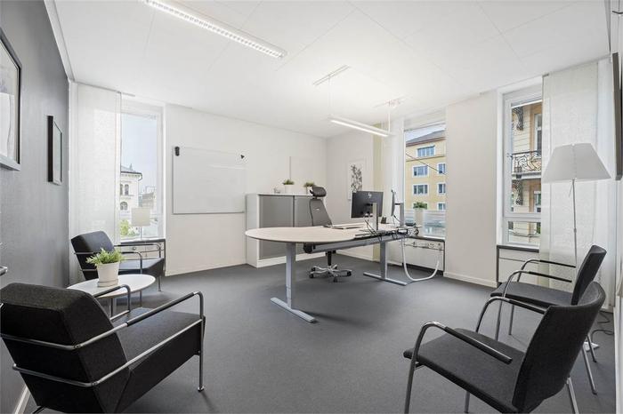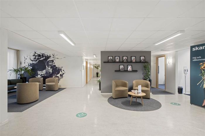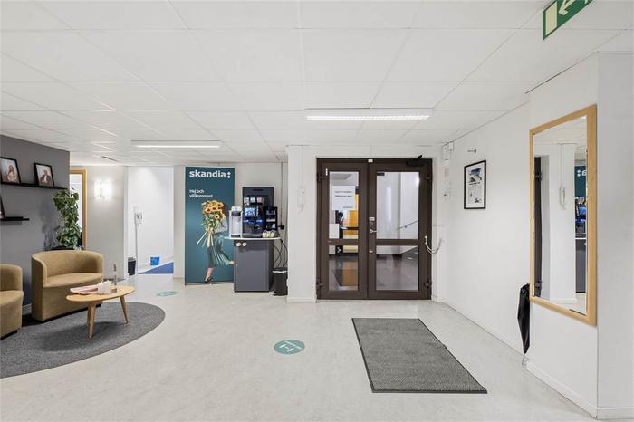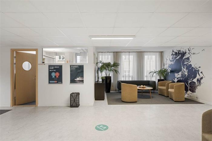 Du når det här moderna och fina kontoret via ett vältilltaget och fint trapphus, det finns även hiss som tar dig från markplan till kontoret. Från trapphuset kommer du direkt in till foajén för kundmottagning, här finns det plats för soffgrupper och övrigt möblemang. Vidare finns det flertalet separata kontorsrum, stort konferensrum för 10-12 personer, personalrum med stort kök och matgrupp för 12-14 personer samt 2 WC. Genomgående är det ett rymligt kontor med öppen planlösning och flertalet separata kontorsrum.