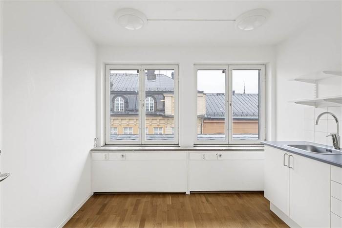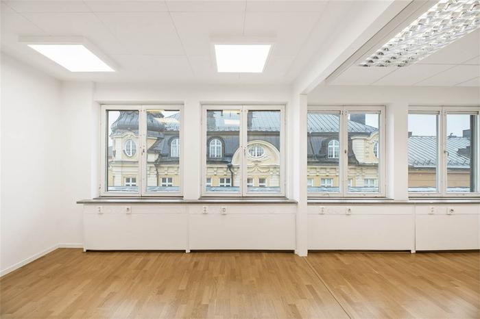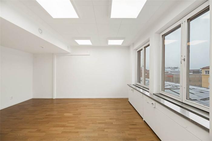 Du når det här moderna och fina kontoret via ett vältilltaget och fint trapphus, det finns även hiss som tar dig från markplan till våning 5. Från trapphuset kommer du direkt in till en hallen för avhängning, vidare finns 2 WC samt ett rymligt matrum utrustat med pentry. Vidare nås 2 separata kontorsrum samt ett större kontorsrum. De separata kontorsrummen rymmer plats för 1-2 personer, medans det större kontorsutrymmet med fördel kan inredas för öppet kontorslandskap eller konferensrum.