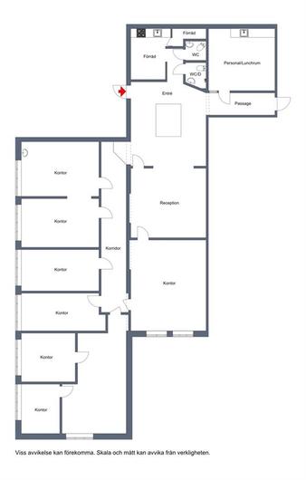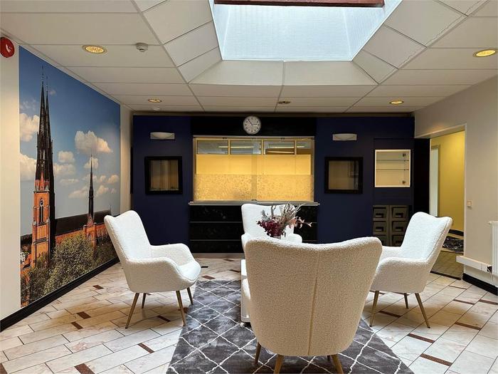 Ljus och väldisponerad lokal om 256 kvm som är anpassad för vård- och behandlingsverksamhet. Lokalen återfinns på tredje våningen och erbjuder entré med anslutande passage/kapprum, två toaletter samt två förråd varav det ena med pentry. Vidare finns reception, väntrum samt sju kontor/behandlingsrum. Tillgång finns till stor varuhiss.