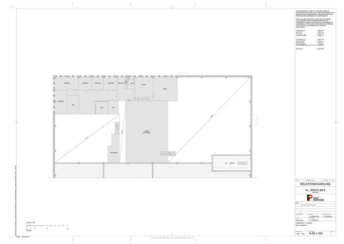 På plan 2 finns en stor yta för lager, flera kontorsrum, två konferensrum samt flera förråd och ett pentry.