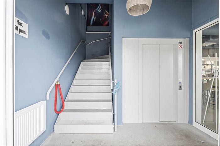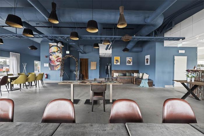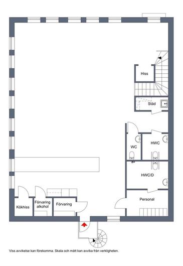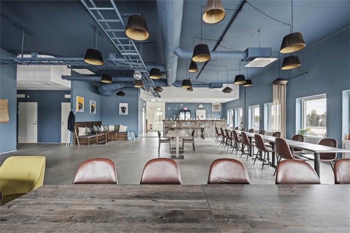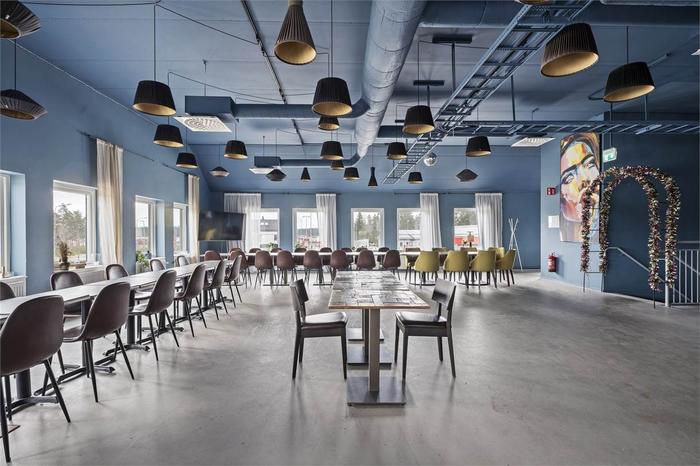 Öppen planlösning om 211 kvm belägen på våning två. Lokalen ligger i ena av fastighetens gavel, tack vare det har lokalen fönster i tre väderstreck vilket skänker ett fint ljusinsläpp. När du kliver upp till lokalen möts man av en stor öppen yta, bra anpassat för att inreda som kontor eller festvåning. Väggar och tak är målat i mörk nyans av blå och golvet är slipad betong. Lokalen har även gott om personalutrymmen i form av omklädningsrum, förråd och RWC med dusch. Det finns även två tolaetter därav ena är RWC samt hiss från markplan. Under lokalen ligger populära restaurang Lindbacken som i framtiden planerar att servera lunch.