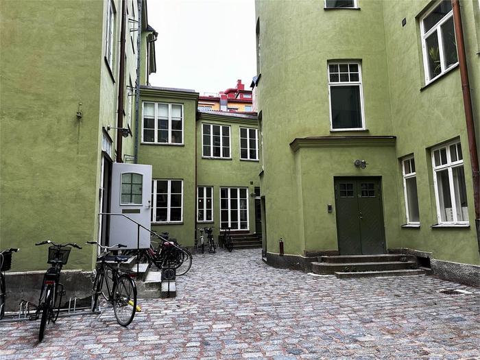 Från trapphuset möter dig en hall med intillliggande wc. Från hallen finns ingång till två st större rum med genomgång tiill ytterligare rum och en inre hall med enklare pentry, wc med dusch, ett större förråd/mindre kontor med fönster samt ytterligare ett rum med utgång/ingång från trapphus inne på gården. Tack vare två ingångar kan lokalen delas till mindre enheter vilket möjliggör en andrahandshyresgäst med egen ingång.