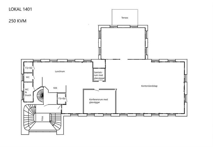 Lokalen är i mycket gott skick och håller hög standard som t.ex ekparkett, teakdörrar, klinker etc. Flexibel planlösning med såväl öppna ytor som inglasade rum perfekt som konferensrum. Lokalen kan anpassas med nya glasväggar till mötesrum etc. Lokalen är även utrustad med nya moderna lampor 2025.
