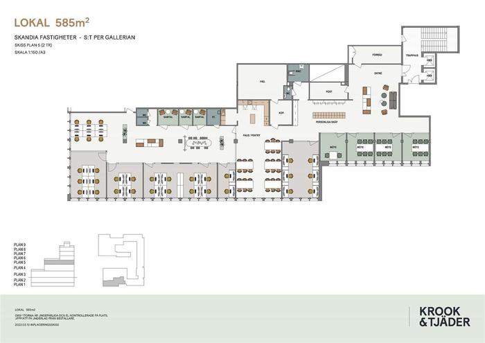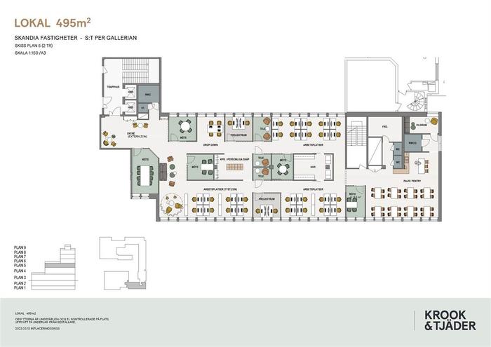 Lokalen är till större delar planerade efter en öppen kontorsyta. Det är dock fullt möjligt att bygga ytterligare rum för att få till en mer rumsindelad kontorslösning .