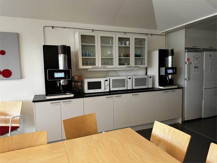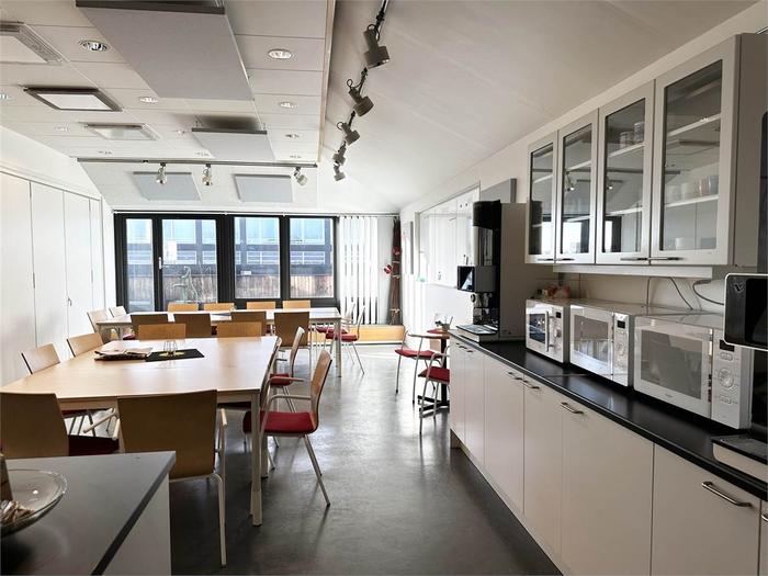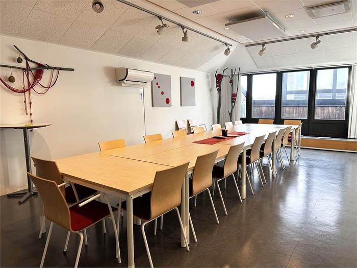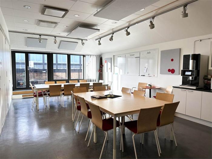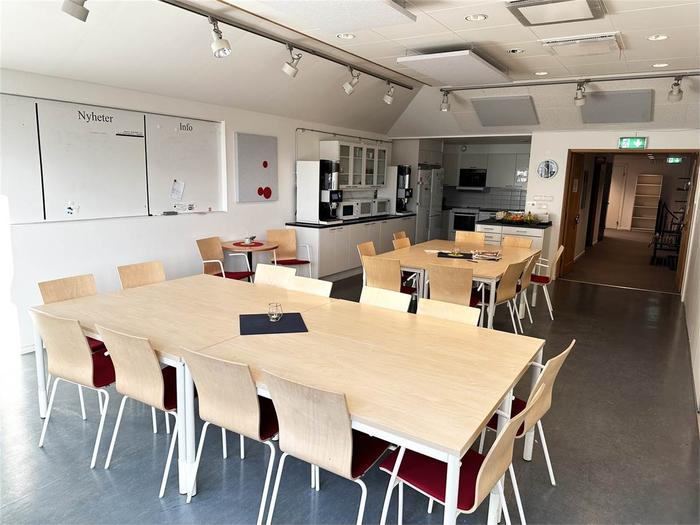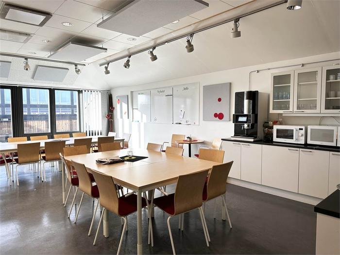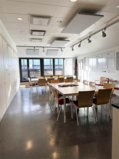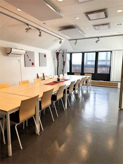 Lokalen är på totalt 1003 m² och är belägen på plan 3 och 4. Våning 3 inrymmer 820 m² och här möts du av en välkomnande receptionsdel, konferensrum och flexibel planlösning med idag många separata kontorsrum men som kan öppnas upp och anpassas efter hyresgästens behov. Vindslokalen är om 183 m² och erbjuder 2 st konferensrum av varierande storlek. Stora fönster med rikligt ljusinsläpp. Personalutrymmen med kök och många sittplatser samt utgång tilll en terrass. Vindsplanet nås från en interntrappa men kan nås även med hiss från trapphuset.