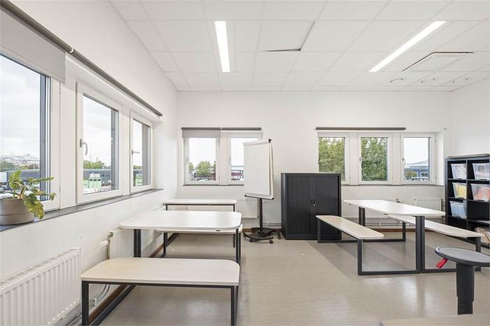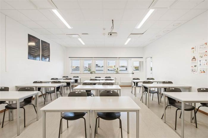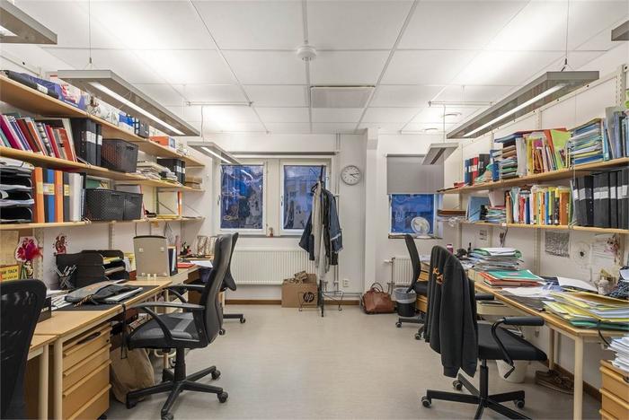 Kontorsytor om 1220 kvm i tre plan. Merparten av verksamhetsytorna finns på plan 1 och 2 med ett generöst antal kontorsrum med mycket ljusinsläpp. Kontorsytorna har bra ljusinsläpp och flertalet större undervisingssalar/konferensrum. Varje våningsplan är utrustat med toalettpaket och lokalen är utustad med hiss.