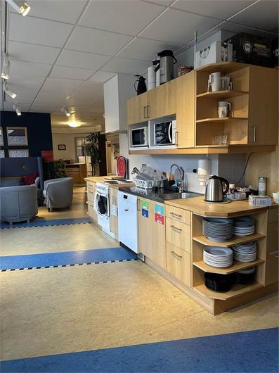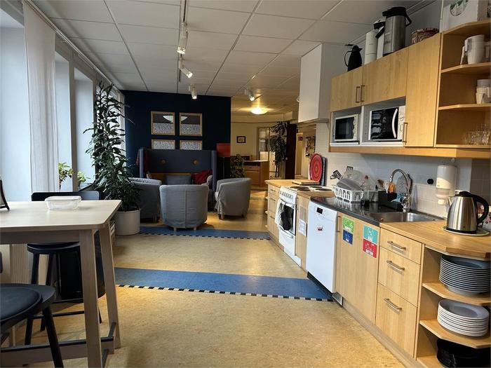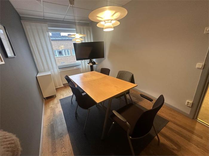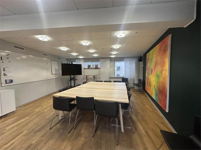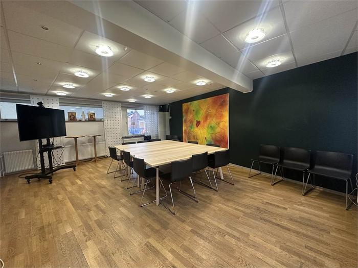 Lokalen har varierad planlösninge där det finns flera rum i varierande storlek som passat för kontor, grupprum och kongferens och även kontoslandskap som inrymmer många arbetsplatser. Det är stora sociala ytor med med ordentligt kök där det finns plats för många personer både med ett rejält matbord men också några mindre bord och en soffgrupp. Intill denna del finns även ett stort konferensrum som rymmer många deltagare. Kontoret ligger högt upp i huset Kontoret ligger högt upp i huset med ett mycket generöst ljusinsläpp. Lätt att anpassa med flera rum eller övrig ändring av planlösning om behovet finns.