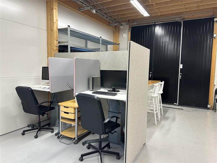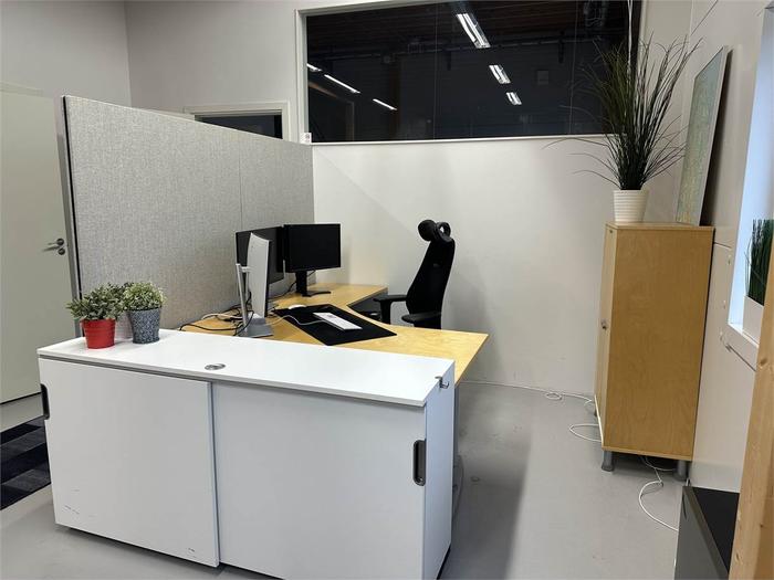 Lokal i tre plan om totalt 226 kvm fördelat i kontor och lager. I Markplanet om 90 kvm har du en öppen yta för lättare produktion, butik eller kontor. WC med tvättmaskin finns här också samt ett rum med värmepanna/förråd. Här finns en port om ca 3x,3,5 m. Trappa upp till mittenplanet om ca 90 kvm som också har en öppen yta med WC och dusch samt ett pentry i vinkel. Vid pentryt finns även en nödutgång med brandtrappa ner. Det finns ytterligare en våning med en mindre yta med snedtak där det finns plats för 3-4 arbetsplatser. Denna yta är ca 46 kvm.