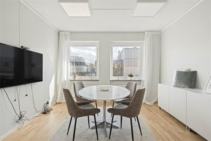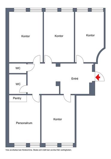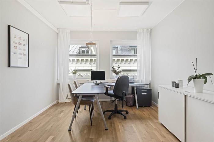 Välkomnande kontorslokal med fint ljusinsläpp från två vädertreck. Lokalen inrymmer en inbjudande hall med väntrum/plats för mindre reception, 4-5 kontorsrum, pentry och WC. Lokalen är belägen högt upp i fastigheten med hiss från markplan och ligger mitt i centrala Uppsala med närhet till resecentrum och stadens generösa butiksutbud, restauranger mm.