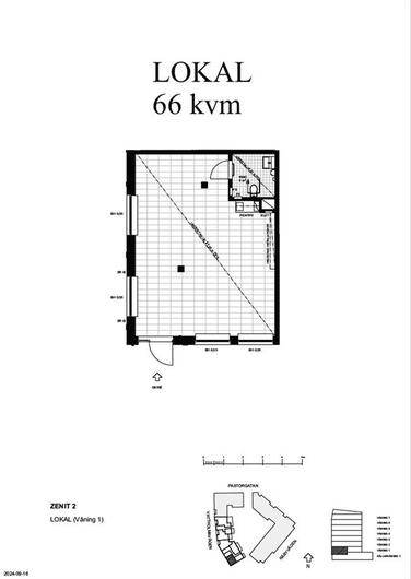 Två hörnlokaler om 66 och 78 kvm. Lokalerna har öppen planlösning med stora fönsterpartier som skänker ett fint ljusinsläpp till lokalerna, det är även generös takhöjd om ca. 3,3 m. Lokalen om 66 kvm kommer vara inredd med RWC och kökstrinett. Lokalen om 78 kvm kommer vara inredd med personalrum men kökstrinett, RWC samt teknikrum för FTX.