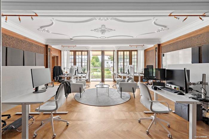 Lokalerna som är vakanta ligger i huvudbyggnaden på bottenplanet och plan 1 om totalt 600 kvm, vindsyta om 193 kvm, källarplanet om 65 kvm samt en sidobyggnad i vinkel med två plan om totalt 265 kvm.