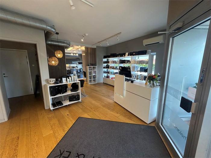 Fin öppen butiksyta med skyltfönster i gatuplan