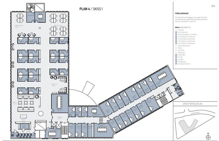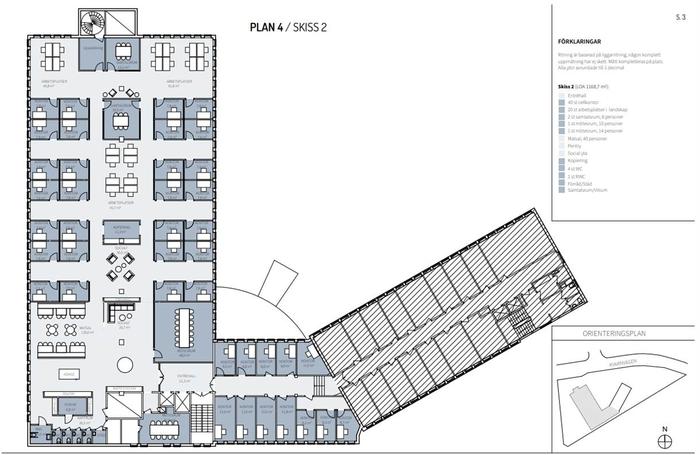 Planlösning:Flexibla kontorsytor som idag är uppdelade mellan både öppna landskap och klassiska cellkontor. Se bilder för exempel på lösningar för nytt kontor.