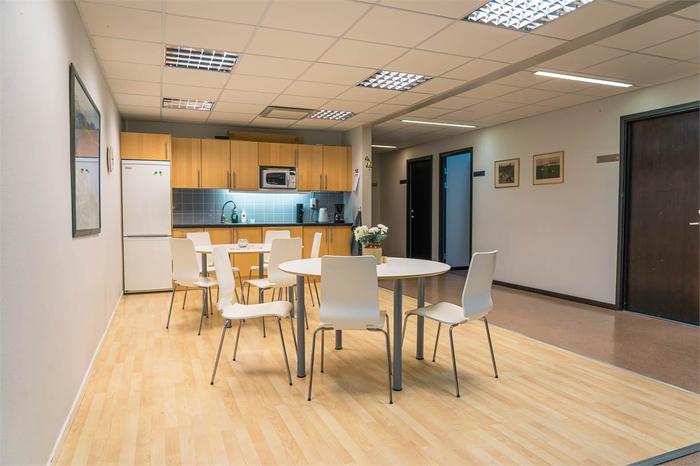 Enklare kontorshotell med kontorsrum och faciliteter på plan två. Planlösningen består av tio separata kontorsrum mellan 11 - 53 kvm (11, 15, 16, 18, 22, 22, 22, 24, 24 och 53 kvm). Det erbjuds flexibla ytor och generösa faciliteter med kök/pentry, omklädningsrum och WC.