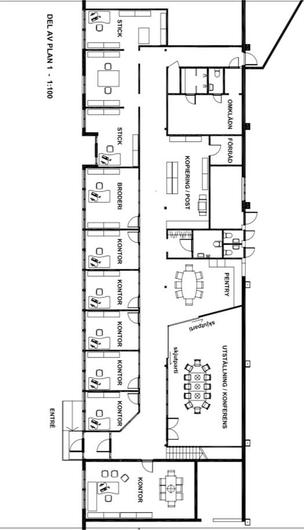 Planlösning:Trevligt kontorshotell med ljusa fina kontor centralt i Lindome.