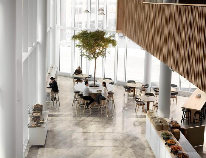 Här ingår allt för en bra och hälsosam arbetsdag och service som gör det lite enklare att få ihop livspusslet. Därför ingår fri tillgång till husets hälsohubb och gym som drivs av Omnia. Där du kan köra ett pass på lunchen eller efter jobbet.
