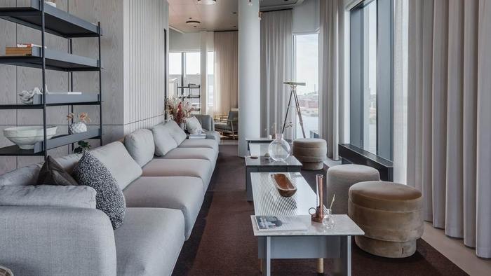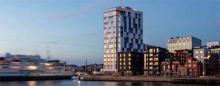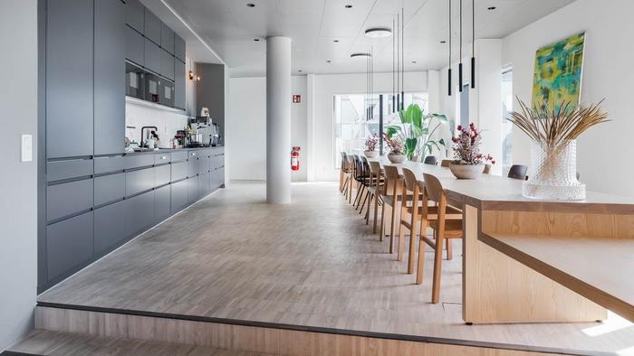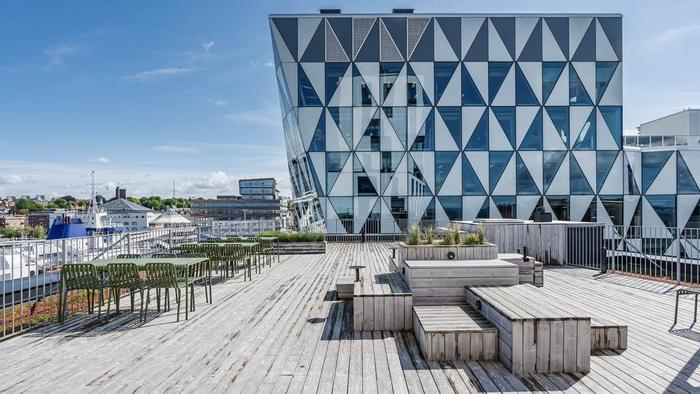 Restaurang med uteservering vid kajkanten och soldränkta takterrasser är ytterligare fördelar som gör det enklare att få till ett hållbart arbetsliv.