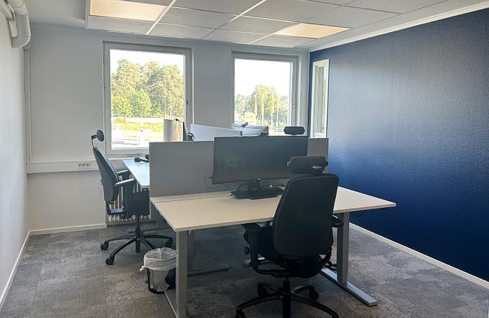 Lokalen består av flera större kontorsrum, konferensrum samt del av gemensamt kök och toaletter.