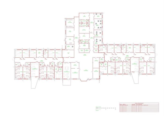 Lokalerna om 1 395 kvm är flexibla och går att dela av om behovet finns. Då utgör den minsta ytan ca 300 kvm. Det är två flyglar med rumsindelad planlösning och även omklädningsrum med duschar. Det finns stora öppna ytor vid entrén där det finns plats både för mottagning, reception och administration. Rakt in finns mottagningsrum/personalrum eller dylikt. Lokalerna passar för olika typer av vård, utbildning, kontor mm.