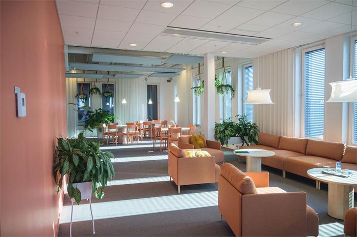 Planlösning:Oavsett vilket medlemskap du väljer har du tillgång till öppna ytor, mötesrum, telefonrum, takterrass och Eat & Meet, platsen där coworkare samlas för att fika, luncha, ta ett möte eller spela pingis.