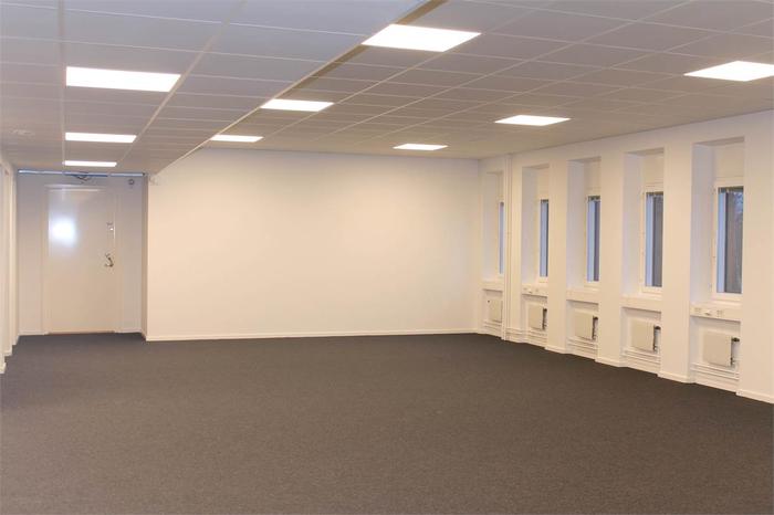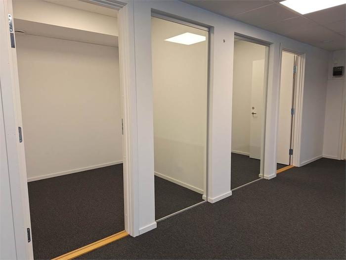 Denna kontorsgemenskap är i bra skick med moderna ytor i en representativ miljö för besökare.