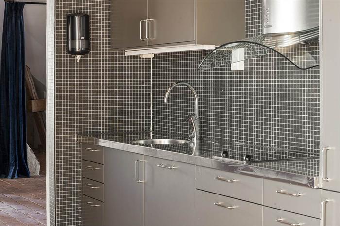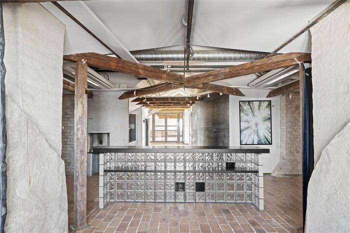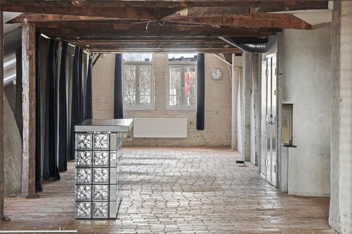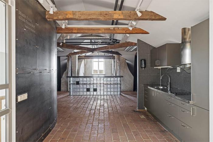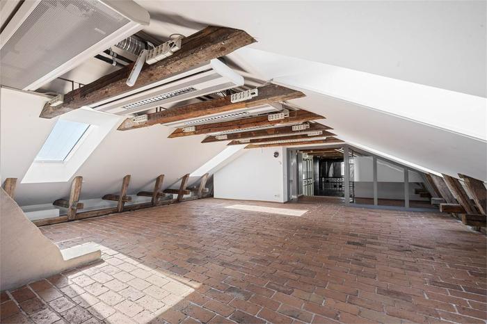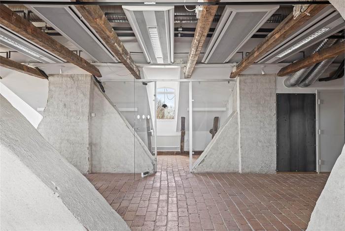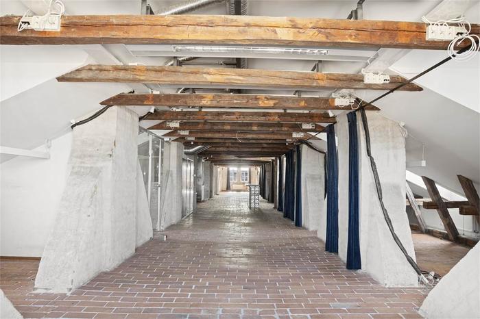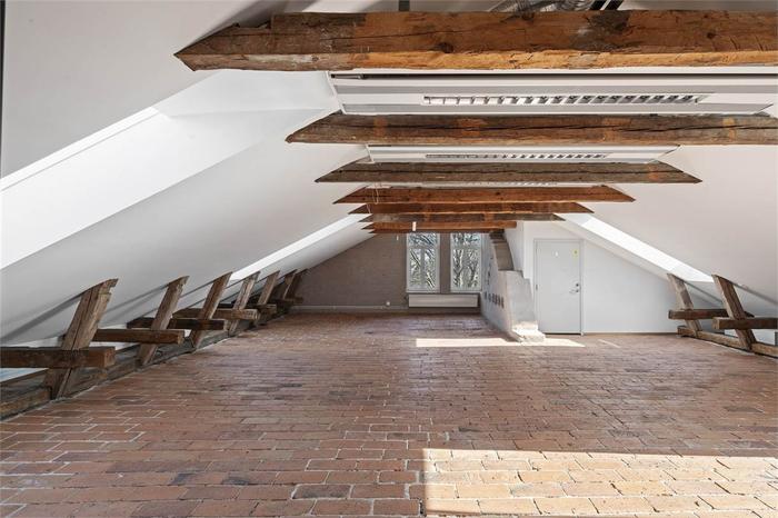 Kontoret om 398 kvm är belägen högst upp i byggnaden med hiss. En unik vindsvåning med äldre och häftiga detaljer. Det är till större delen en öppen yta med synliga takbjälkar och tegelgolv, flertalet kontorsrum varav ett par har glasdörrar, ett större konferensrum och köksdel i anslutning till entrén. Kapprum och två toaletter samt förrådsutrymmen.