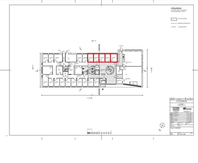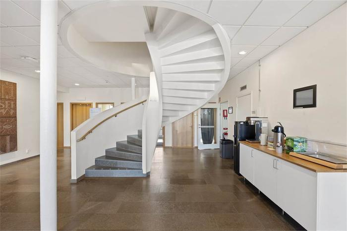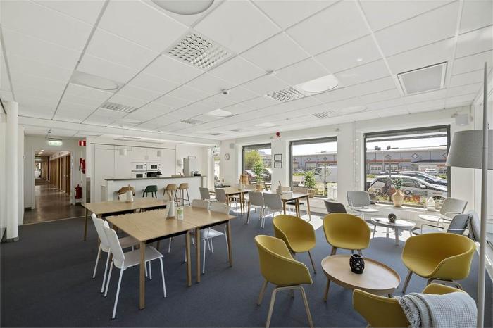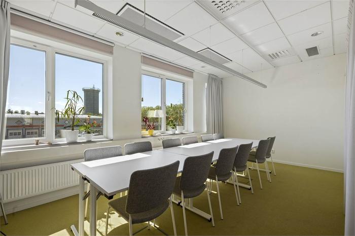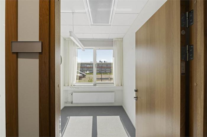 De sex kontorsrummen om 12 kvm ligger på entréplan i direkt anslutning till entrén. Lokalen är genomgående ljus med modernt kök, mötesrum och toaletter som delas med övriga hyresgäster. Det finns även en gemensam takterass med omklädningsrum med bastu och dusch.