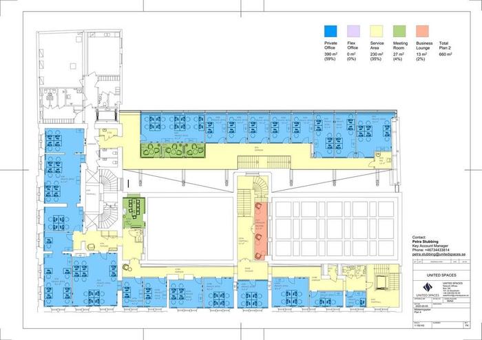 Planlösning:Med 2400 m2 i 4 våningar erbjuds nu företag flexibla kontorslösningar som är mer än ett kontorshotell. Ett modernt och nytänkande erbjudande för alla typer av företag oavsett om ditt företag kräver en eller 100+ arbetsplatser så skräddarsys lösningar som passar ditt företag på bästa sätt.