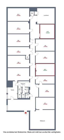 Prisinformation:Hyran fastställs i dialog med hyresvärden. I hyran ingår värme, vatten och el. Moms utgår ej. Kostnad tillkommer för bredband om 527 kr/mån per kontorsrum.