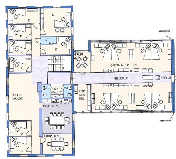 Lokalen sträcker sig över två våningsplan och erbjuder en mångsidig potentiell arbetsmiljö. Här finner du flertalet mötesrum och kontor, blandat med stora öppna ytor på plan två. Möjligheterna är stora för att anpassa ytorna till nya behov.