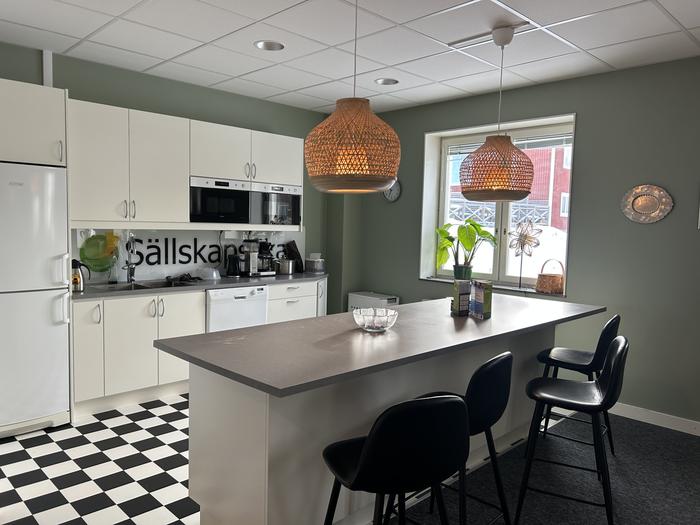 Bra disponerad lokal för en liten mindre verksamhet. Egen ingång, 2-3 kontorsrum, kök med barbord samt en loungedel.