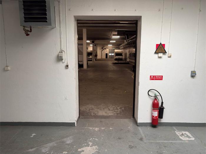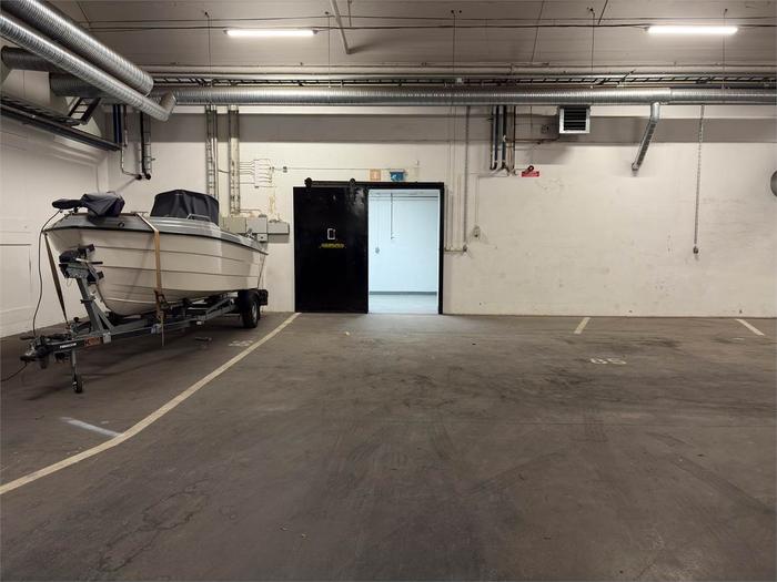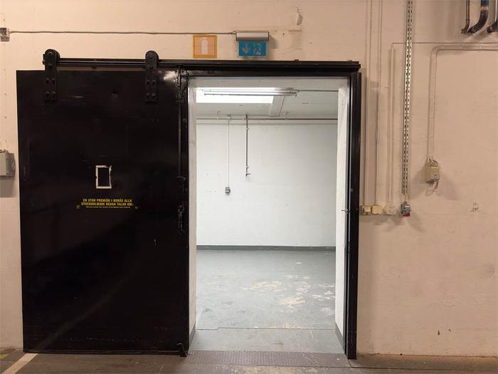 Den ena accessen sker via ett garage med uppvärmd yta, där det finns möjlighet att förvara fordon eller utrustning inomhus. Från garaget finns en intern port in till lokalen.