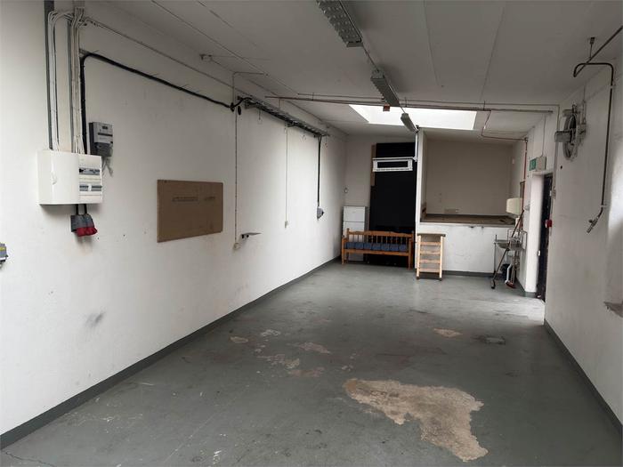 Lokalen erbjuder en öppen yta med takhöjd upp till 3,2 meter, vatten finns tillgängligt och elkapaciteten är anpassad för industriell verksamhet.