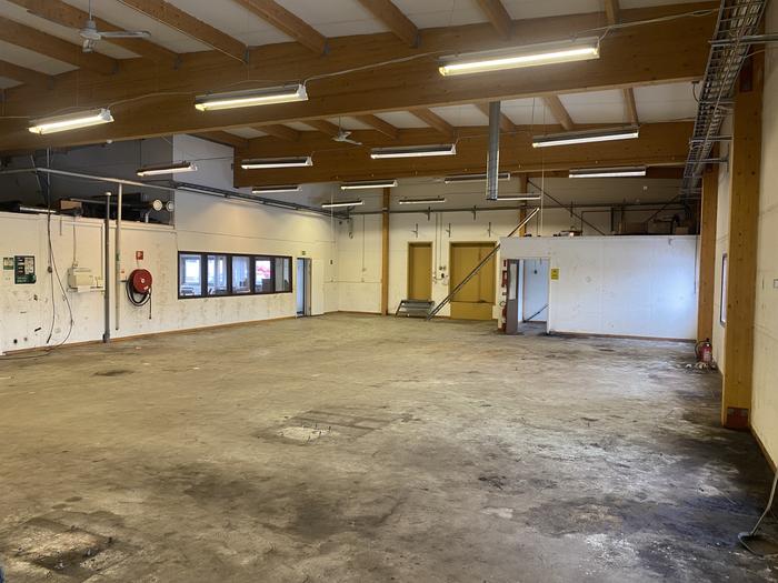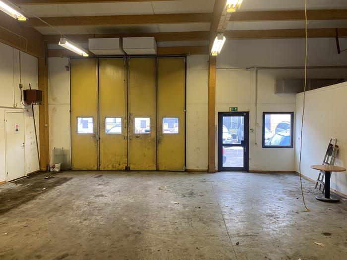 Lager/produktionslokal alternativt butikslokal/lager med personalutrymmen och kontor. Stor vikport. Lokalen har separat kundentré.