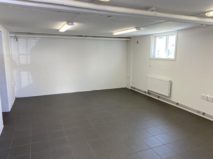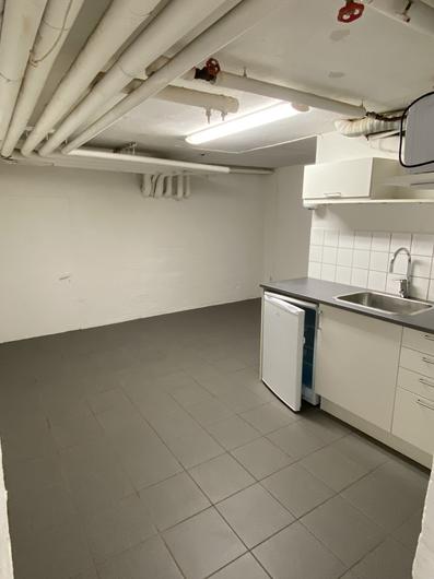 Lokalen är en källarlokal och har en egen ingång från utsidan.