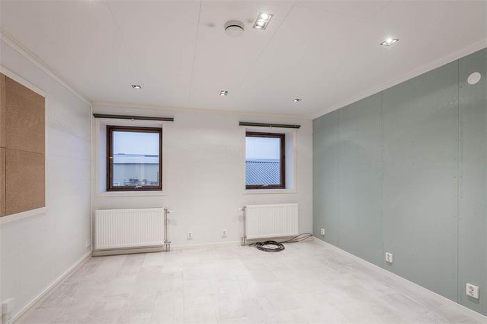 Kontorsdelen ligger i direkt anslutning till lagret på våning 2 och rymmerarbetsrum,pentry och WC.