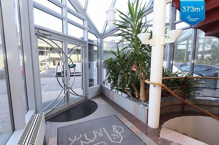 Det går också att nå lokalen via hiss eller trappa upp från byggnadens varmparkeringsgarage i källarplan.