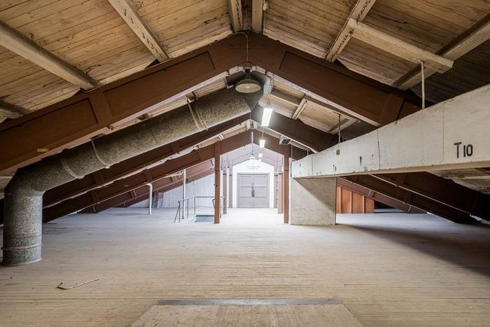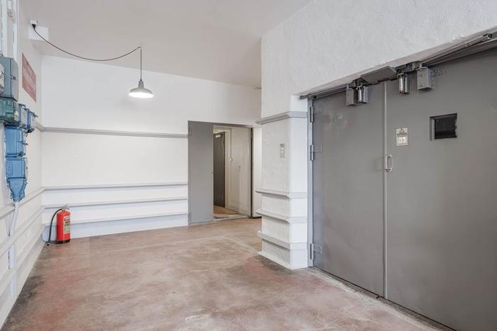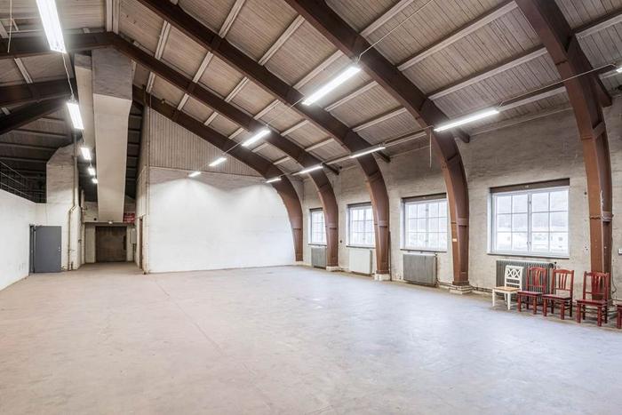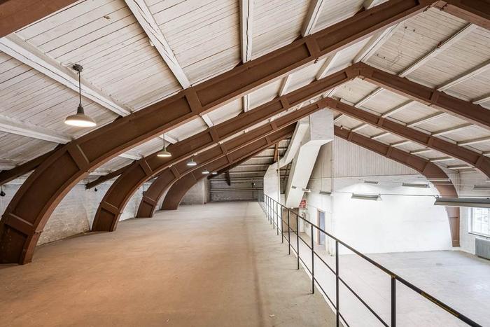 Lokalen får mycket ljus tack vare de vackra fönsterpartierna längs lokalens långsida. Högt i tack med bågar ger lokalen karaktär och det rymliga entresolplanet ger lokalen extra utrymme.