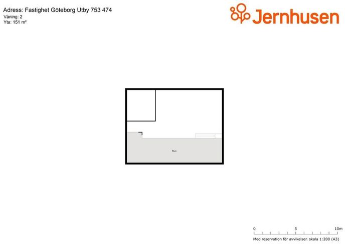 I det främre rummet finns en öppen yta, ett separat rum samt trappa upp till ett öppet entresolplan om ca 151 kvm.