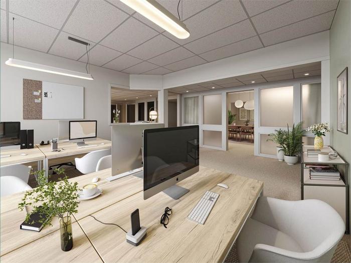 En möjlighet till att etablera en verksamhet som har behov av både kontor och lager/verkstad. Kontorsdelen ligger utmed kristinebergsvägen och har goda parkerings och skylt möjligheter. Lagerdelen kommer man åt från en inhägnad innegård. Stora portar för att underlätta in/ut lastning.