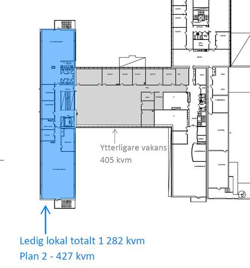 Lager-/logistikmöjlighet: ca180 kvm öppet landskappå entréplan kan användas som enklare lageryta via större dörr/port med ramp