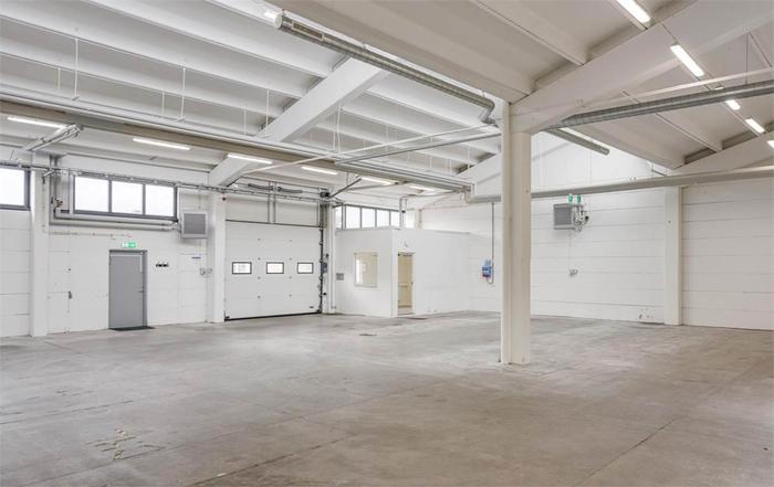 Lagerytan är ljus med takfönster och det finns tillgång till markport (bredd ca 4,3 m och höjd ca 2,5 m). Den totala lagerytan är ca 750 kvm med en takhöjd om ca 4,2 m. I anslutning till lagerdelen finns omklädning med duschmöjligheter.