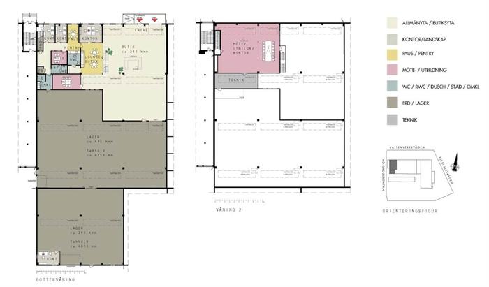 Lokalen är uppdelad i butik/showroom, kontor och lager. En del av ytan har ett trevligt och ljust entrésolplan med generöst stora utrymmen. Ytan är optimal för event eller utbildningar eller som ett stort härligt personalutrymme. I anslutning till butiksdelen finns en härlig loungeyta tillsammans med kontor- och mötesrum.