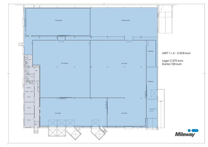 Nu finns möjlighet att hyra en välutrustad lagerlokal inklusive kontor om totalt 2 370 kvm, perfekt för livsmedelstransport och kylvaror.