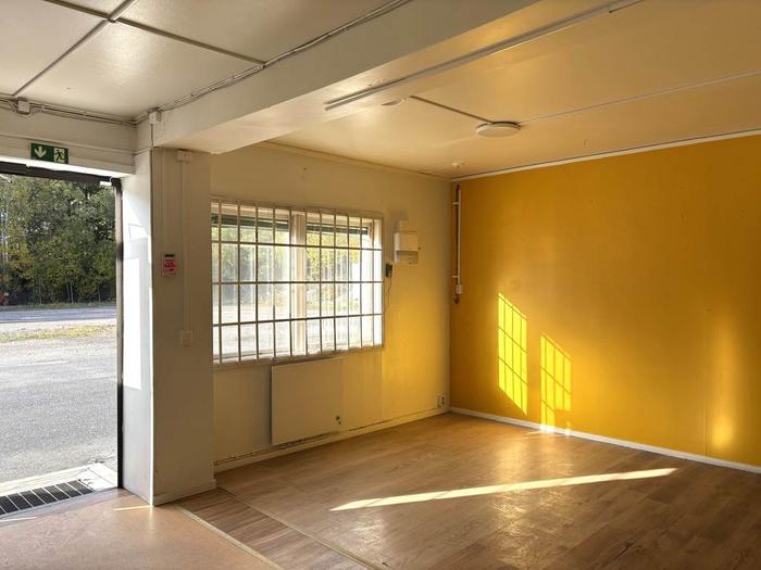 Detta är en mycket trevlig industrilokal med bra golvytor och hög takhöjd. Lokalen har 2 industriportar där en av dem är på kortsidan av lokalen och den andra på långsidan - det blir som två lokaler i lokalen. Utanför portarna finns en mycket stor markytan för uppställning av ex material, lastbilar, personbilar (tillkommande hyra för uppställningsytan). Lokalen lämpar sig perfekt för ex produktionsverksamhet, smidesverkstad, finsnickeri, bilvårdsverksamhet, mm.