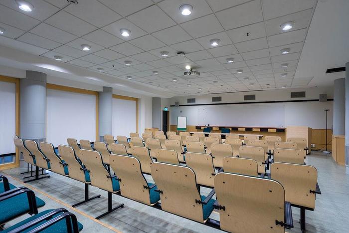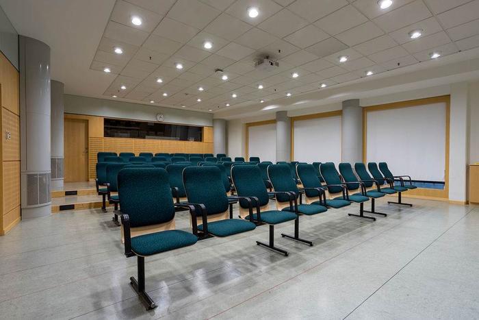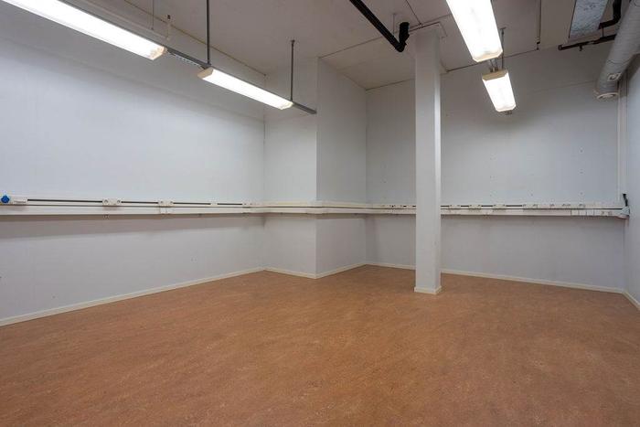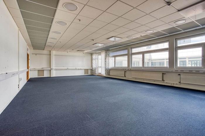Lokalen håller redan idag en genomgående mycket god standard med fräscha ytskikt. De flesta väggarna är vitmålande med vitt undertak. Mörkgrå textilmatta på golv ger en behaglig akustik.