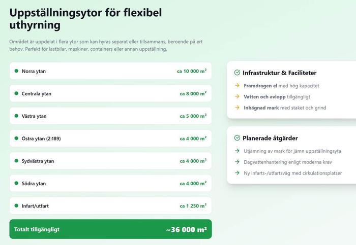 Uppställningsyta för uthyrning: 4 000 - 36 000 kvm